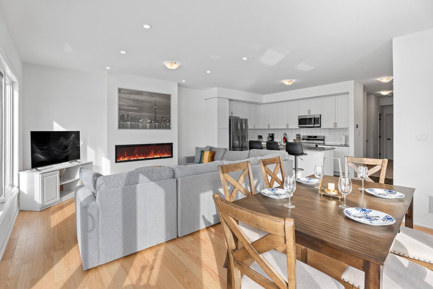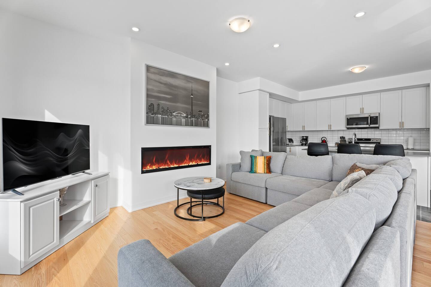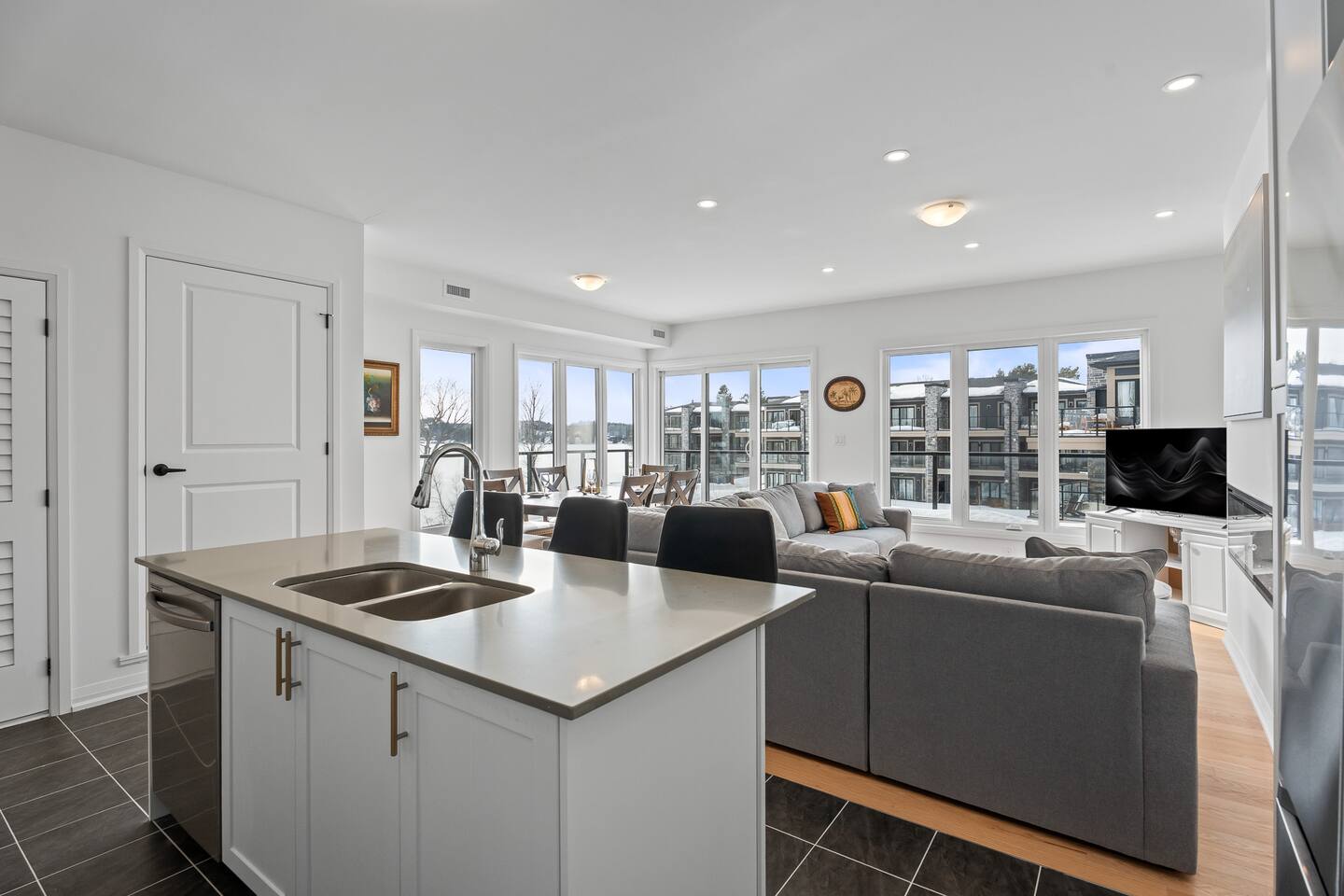 Escape to this stylish Muskoka retreat in the heart of Huntsville. Perfectly located near Fairy Lake and downtown, yet tucked away in a peaceful waterfront community. This spacious condo is designed for comfort, connection, and relaxation. Working professionals are welcome! Sip your morning coffee on the private balcony, unwind by the cozy fireplace on cool evenings 🔥, or gather with family and friends in the bright open-concept living space. Book your scenic Huntsville getaway today! 🏡✨