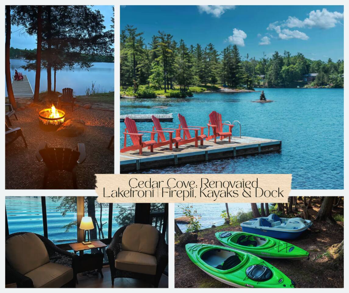 π Discover Cedar Cove Cottage, a fully renovated lakefront sanctuary in Muskoka, just under 2 hours from Toronto. Bask in vibrant fall colors, southwest sunset views π , and relax by the firepit or private dock with kayaks π£ββοΈ. Indoors, enjoy a cozy Muskoka Room, chef-ready kitchen, premium linens, and fast WiFi. Only 15 mins from Bracebridge & Port Carling, itβs the perfect autumn retreat for families and groups.
