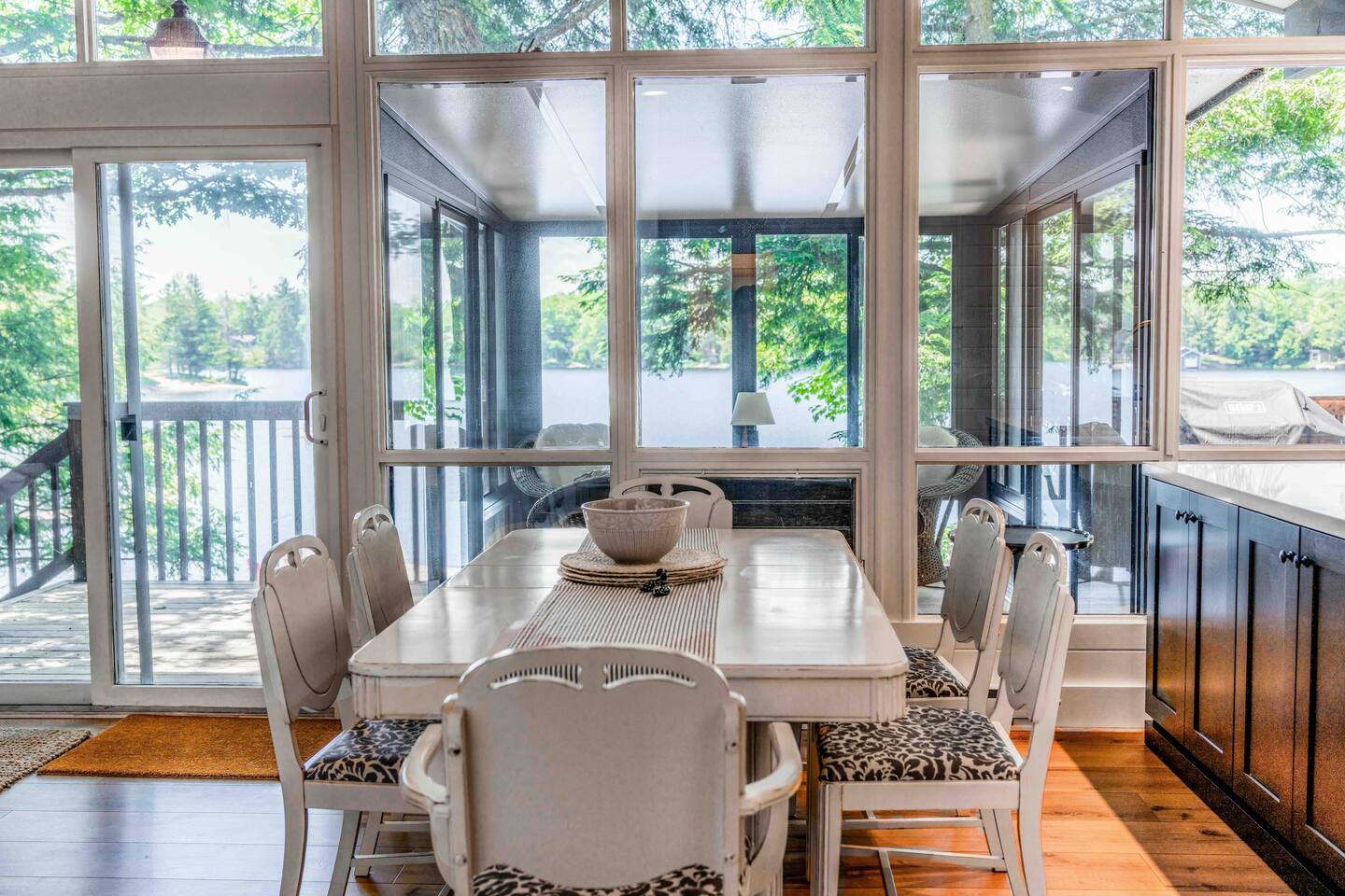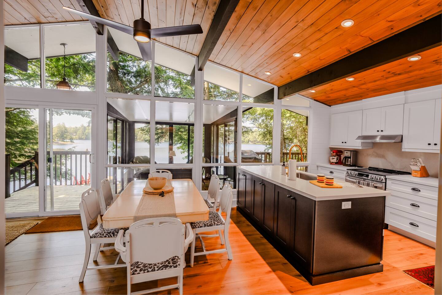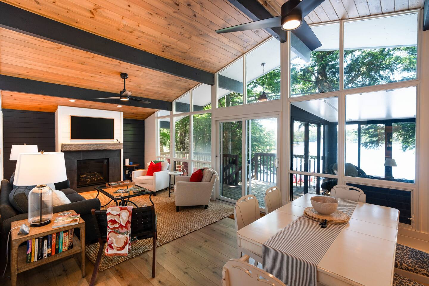 Welcome to Cedar Cove Cottage, your fully renovated modern lakefront escape on Leonard Lake, just under 2 hours from Toronto. Thoughtfully designed for families and groups, the cottage combines luxury comfort, outdoor adventure, and the tranquility of Muskoka living. Whether youβre paddling on the lake, lounging in the Muskoka Room, or watching your kids swimming from the dock at sunset, every corner of this property is designed to create lasting memories. π Lakefront Living at Its Best β 125 feet of private shoreline on Leonard Lake β Southwest-facing dock with full sun from late morning to sunset β Shallow, sandy entry on the left side of the dock (kid-friendly) β Deeper end off the dock with ladder for swimming β Lakeside firepit, perfect for sβmores and stargazing β 2 kayaks + 1 pedal boat included (life jackets provided) β Public boat launch nearby, ideal if youβre bringing a boat or PWC ποΈ Inside Your Luxury Cottage β Completely renovated in 2023 with modern, cozy finishes β Classic vaulted ceilings and floor-to-ceiling lake views β Gas fireplace and baseboard heaters for cool nights β High-speed WiFi throughout the property β Smart TV with Bell Fibe, Netflix-ready β Bluetooth speaker, board games, playing cards, and 2 yoga mats β Smart lock entry for seamless self check-in ποΈ Sleep & Refresh β 3 bedrooms: ββ Bedroom 1: Queen bed ββ Bedroom 2: Queen bed ββ Bedroom 3: Two single beds (ideal for kids) β 2 full bathrooms stocked with: ββ Body wash ββ Shampoo & conditioner ββ Hand soap & hand towels β Bed linens, pillows, bath towels, and extra blankets included π½οΈ Kitchen & Dining β Fully stocked kitchen with: ββ Full-sized fridge, stove/oven, microwave, dishwasher ββ Coffee maker, kettle, toaster, cookware, utensils, dishware - Filtered water (drinkable) β Dish soap, cleaning supplies, garbage & recycling bags β Weber BBQ with propane provided β Indoor dining area that seats up to 8 π² The Muskoka Room β Screened-in sunroom with cushioned seating, the perfect bug-free zone β A peaceful retreat for reading, morning coffee, or evening wine π£ Leonard Lake Details β Mid-sized spring-fed lake (maximum depth: 60 feet) β Clean, calm water, perfect for kayaking, swimming, paddle boating β Great fishing: 2 rods provided for guest use β Minimal boat traffic = quiet and peaceful experience π Location & Getting Around β Located off a year-round maintained road β Parking for up to 4 vehicles on-site β 15 minutes to: Bracebridge (main street shopping, LCBO, grocery stores, restaurants) and Port Carling (boutique shops, patios, ice cream, local attractions) β 35 minutes to Rosseau for upscale dining and iconic Muskoka charm π Important Notes β House Rules & Seasonal Tips π« No parties or events β We prioritize peace and respect for the lake and our neighbors. Violations are subject to fines. π Quiet hours are from 10 PM to 8 AM, enjoy the serenity of the lakefront. π₯ Firewood is provided π Summer stays β Donβt forget sunscreen and bug spray! Enjoy all the outdoor amenities.