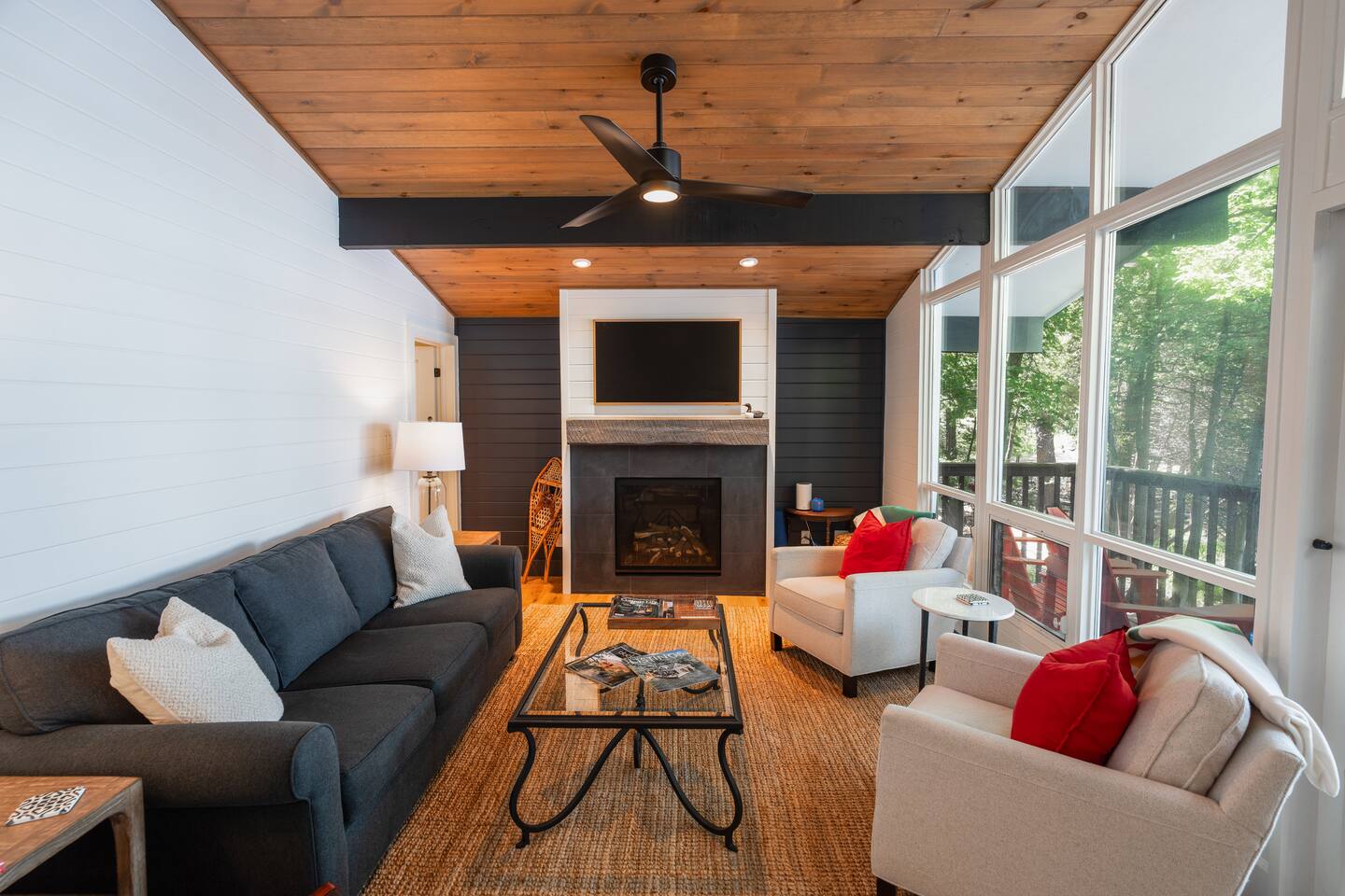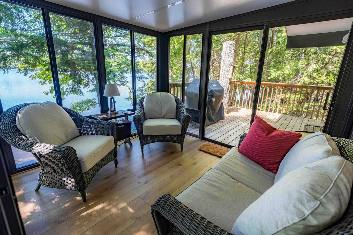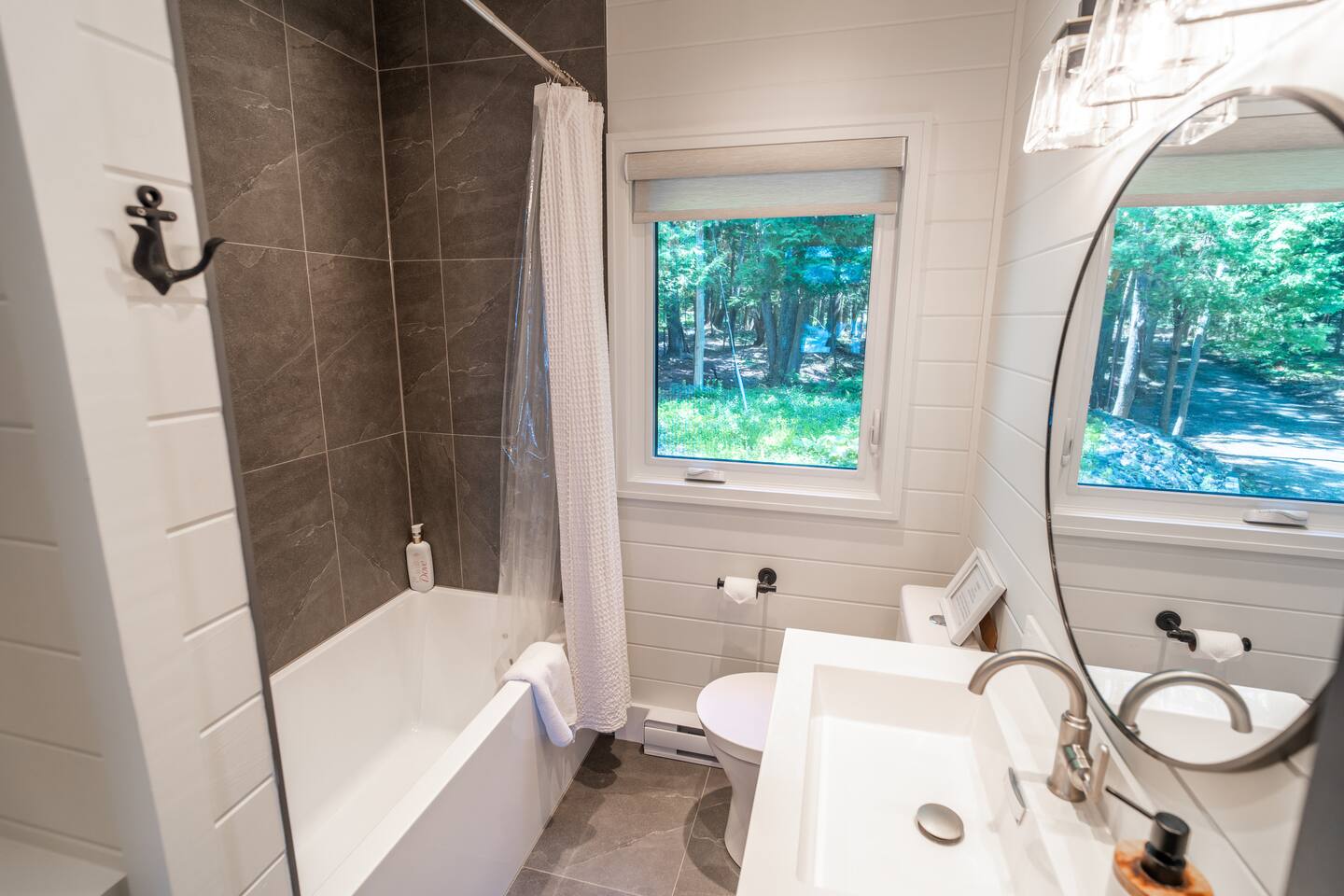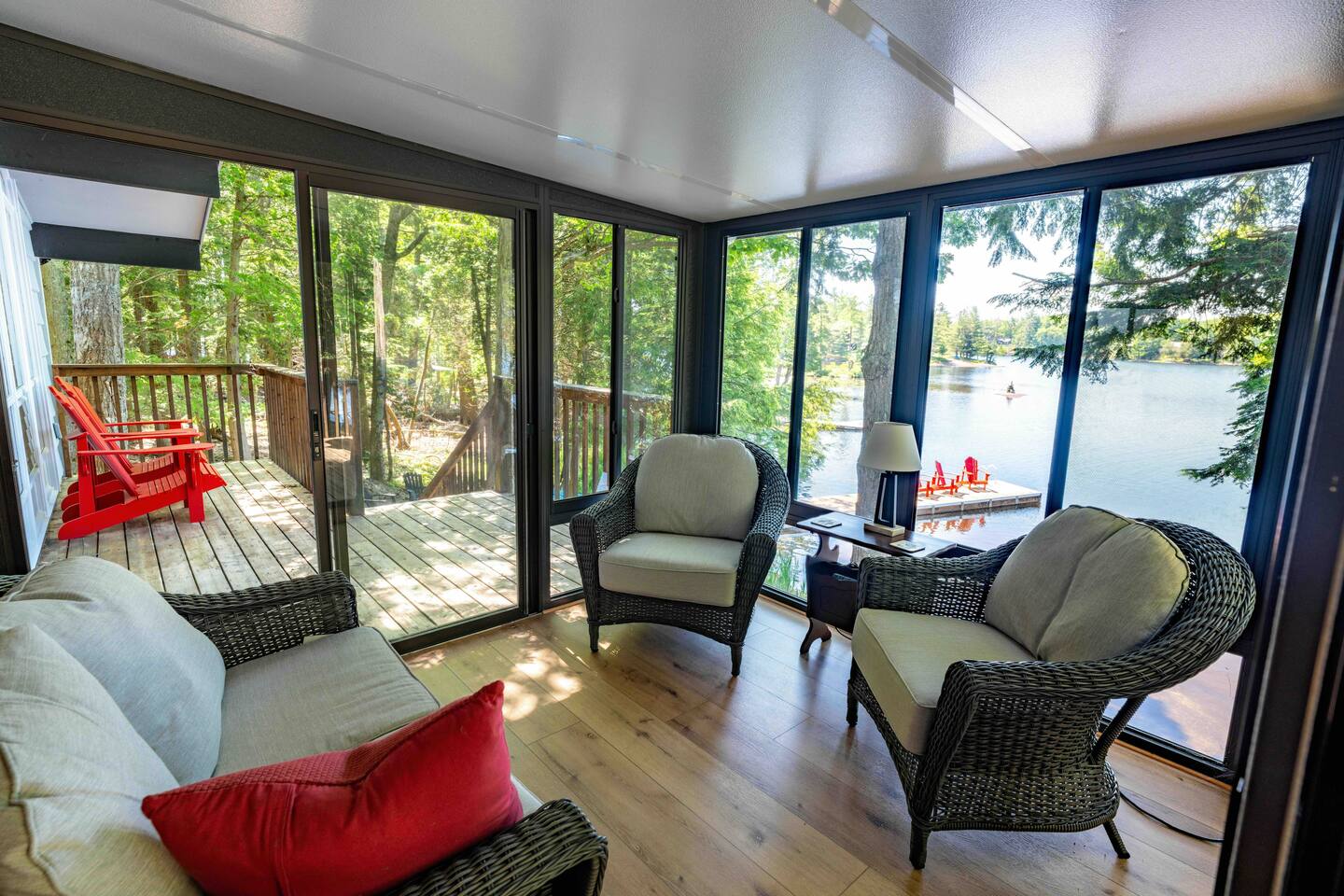 Welcome to Cedar Cove Cottage, your fully renovated modern lakefront escape on Leonard Lake, just under 2 hours from Toronto. Thoughtfully designed for families and groups, the cottage combines luxury comfort, outdoor adventure, and the tranquility of Muskoka living. Whether youβre paddling on the lake, lounging in the Muskoka Room, or watching your kids swimming from the dock at sunset, every corner of this property is designed to create lasting memories. π Lakefront Living at Its Best β 125 feet of private shoreline on Leonard Lake β Southwest-facing dock with full sun from late morning to sunset β Shallow, sandy entry on the left side of the dock (kid-friendly) β Deeper end off the dock with ladder for swimming β Lakeside firepit, perfect for sβmores and stargazing β 2 kayaks + 1 pedal boat included (life jackets provided) β Public boat launch nearby, ideal if youβre bringing a boat or PWC ποΈ Inside Your Luxury Cottage β Completely renovated in 2023 with modern, cozy finishes β Classic vaulted ceilings and floor-to-ceiling lake views β Gas fireplace and baseboard heaters for cool nights β High-speed WiFi throughout the property β Smart TV with Bell Fibe, Netflix-ready β Bluetooth speaker, board games, playing cards, and 2 yoga mats β Smart lock entry for seamless self check-in ποΈ Sleep & Refresh β 3 bedrooms: ββ Bedroom 1: Queen bed ββ Bedroom 2: Queen bed ββ Bedroom 3: Two single beds (ideal for kids) β 2 full bathrooms stocked with: ββ Body wash ββ Shampoo & conditioner ββ Hand soap & hand towels β Bed linens, pillows, bath towels, and extra blankets included π½οΈ Kitchen & Dining β Fully stocked kitchen with: ββ Full-sized fridge, stove/oven, microwave, dishwasher ββ Coffee maker, kettle, toaster, cookware, utensils, dishware - Filtered water (drinkable) β Dish soap, cleaning supplies, garbage & recycling bags β Weber BBQ with propane provided β Indoor dining area that seats up to 8 π² The Muskoka Room β Screened-in sunroom with cushioned seating, the perfect bug-free zone β A peaceful retreat for reading, morning coffee, or evening wine π£ Leonard Lake Details β Mid-sized spring-fed lake (maximum depth: 60 feet) β Clean, calm water, perfect for kayaking, swimming, paddle boating β Great fishing: 2 rods provided for guest use β Minimal boat traffic = quiet and peaceful experience π Location & Getting Around β Located off a year-round maintained road β Parking for up to 4 vehicles on-site β 15 minutes to: Bracebridge (main street shopping, LCBO, grocery stores, restaurants) and Port Carling (boutique shops, patios, ice cream, local attractions) β 35 minutes to Rosseau for upscale dining and iconic Muskoka charm π Important Notes β House Rules & Seasonal Tips π« No parties or events β We prioritize peace and respect for the lake and our neighbors. Violations are subject to fines. π Quiet hours are from 10 PM to 8 AM, enjoy the serenity of the lakefront. π₯ Firewood is provided π Summer stays β Donβt forget sunscreen and bug spray! Enjoy all the outdoor amenities.