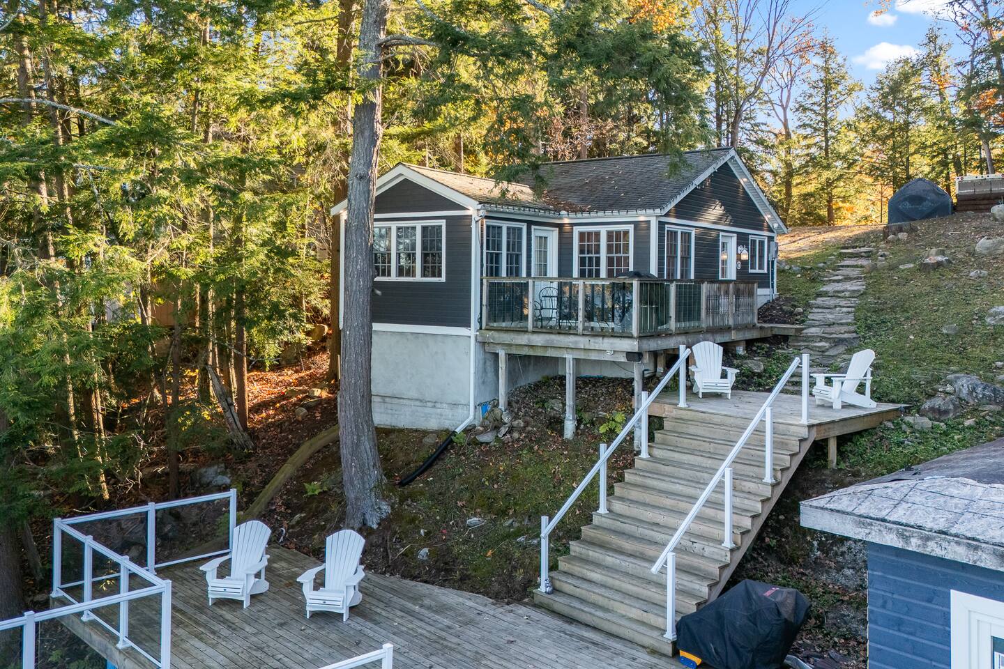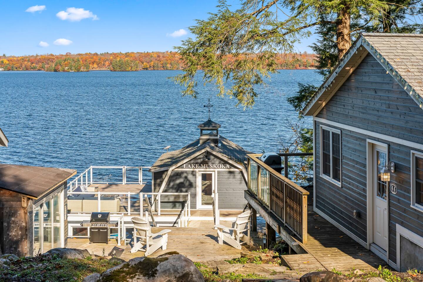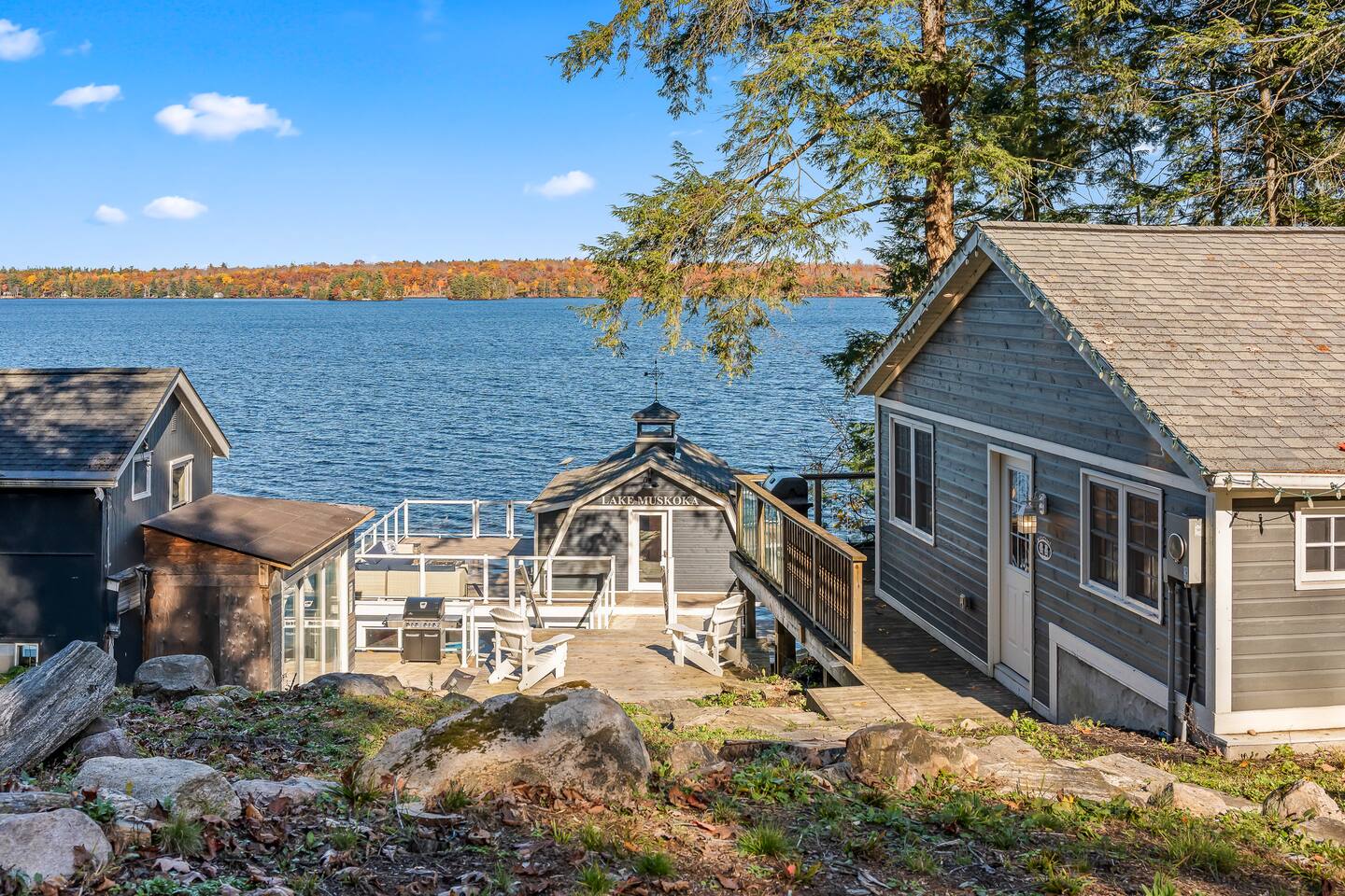 π‘ PRIVATE WATERFRONT RETREAT Welcome to this perfect Lake Muskoka escape designed for family fun and relaxation! Enjoy this large, private property with 2 bedroom cozy Muskoka infused cottage and fabulous boathouse with tiered decking. Adventure awaits with: π 2 kayaks π£ββοΈ π Jump Gate π Firepit for nightly sβmores under the stars π Fire Table π Northwest-facing sunsets π the best Muskoka views π Fantastic upper boathouse living area Bring your family, make memories, and experience the best of Muskoka π SLEEPING ARRANGEMENTS Comfortable for families or 2 couples: π Primary Bedroom: King bed π Bedroom 2: 2 bunks, Queen over queen π2 Queen pullout sofas in upper boathouse π Bathrooms: π Bath in Cottage: 3-piece (w/shower) π Bath in Boathouse: 3-piece (w/shower) Sleeps up to 6 guests. Perfect for singles, small family or 2 couples! Settle in, stretch out, and relax. You will feel the stress melt away the minute you arrive. ποΈ INSIDE THE COTTAGE Step into this light and bright, one level, 2-bedroom, 1-bath cottage featuring: Cozy living area with TV and comfortable seating. Galley kitchen and banquet seating area for dining. Five appliances (which include full washer/dryer) round out this space. Moving to the upper level boathouse living area you will find another 3-piece bathroom, bar/coffee station area and large living room with 2 Queen pull out sofas, large Smart TV and wall to wall windows for a spectacular view of Lake Muskoka! Comfortable furnishings throughout Outside, enjoy the multiple lake facing decks with room for dining, 2 gas bbqs for the outdoor chef in your group and multiple seating areas. Take in the Lake Muskoka scenery from these great spots where glass railings allow a full view βπ· Leave the city behind and feel the stress melt away the moment you set foot on this lovely property. π EXPLORE THE AREA π Boat into Bala, Port Carling or Gravenhurst! π€ π Catch live music at The KEE πΆ π Shop or dine in Bala or Gravenhurst π Explore charming local boutiques πHike or snowshoe the trails around the lake at Hardy Lake Provincial Park πStargaze at the Torrence Barrens Reserve Located minutes to Bala, you're: π20 minutes to Gravenhurst πOnly 2 hours from Toronto an easy drive for quick escapes. Adventure is waiting just outside your door. Come and explore Lake Muskoka! π WHY EVERYONE LOVES THIS PROPERTY! πAccess for miles of boating on the big 3 Muskoka Lakes π Year round availability π Beautiful unobstructed views of Lake Muskoka and stargazing π On a year round road yet private and peaceful π Full back up generator in case of power outages π AC and heat in both buildings for year round comfort. Book your Muskoka family getaway today! Dates will fill fast on this one. Whether you're planning a summer lake adventure or a cozy winter getaway, this year-round Muskoka Lakes, Bala cottage is the perfect setting for unforgettable memories. ποΈβοΈ Your Muskoka escape is just one booking away we canβt wait to host you!
