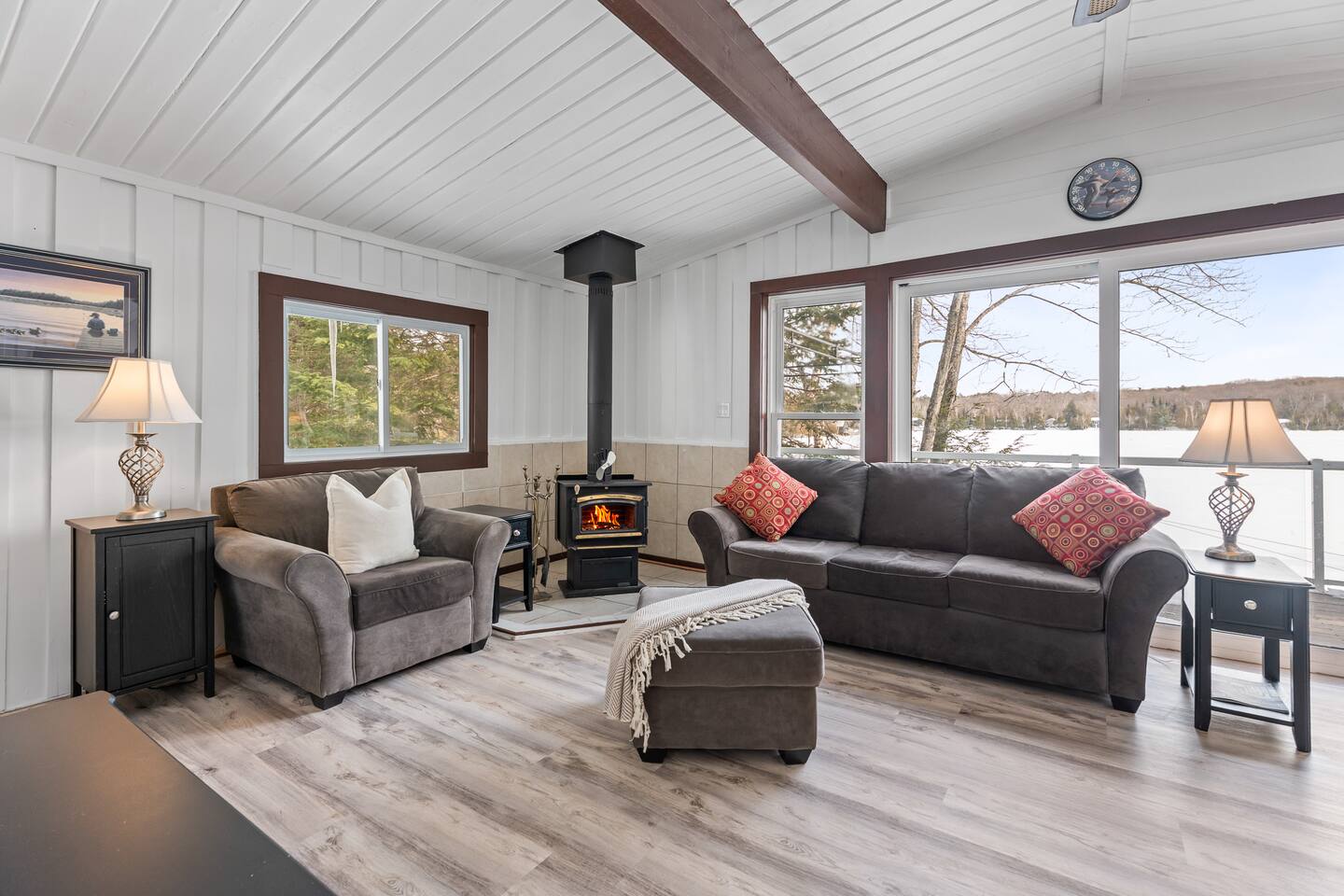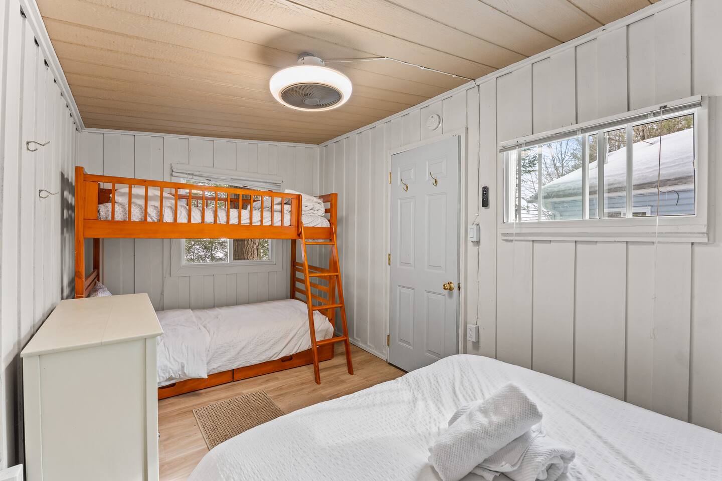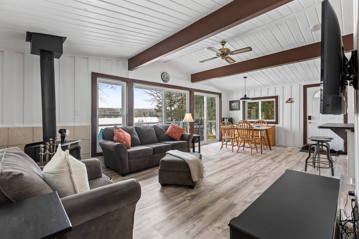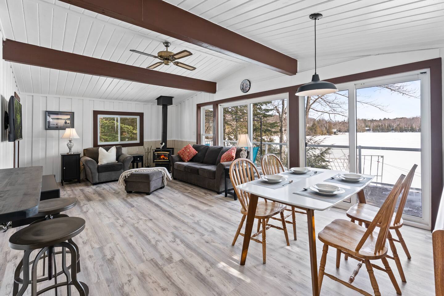 FAMILY FRIENDLY WATERFRONT RETREAT Designed for families and friends that are looking to spend quality time together. You will find everything you need in this well appointed family and pet friendly cottage! Welcome to this Menominee Lake Waterfront Stay. We have worked to make it an enjoyable and comfortable experience for anyone looking to relax and unwind in beautiful Muskoka! Adventure and comfort await with these features: ✔ Prime Waterfront Location on Menominee Lake ✔ Sleeps up to 6 guests ✔ 3 Bedrooms | 1 Bathroom ✔ Fully Equipped Kitchen ✔ Free Parking on Premises ✔ Pet-Friendly Space ✔ Year Round Access ✔ Fire Pit ✔ Kayak ✔ Pedal Boat ✔ SUP ✔ Large Dock ✔ Sunsets ✔ Shallow Sandy Entry ✔ Convenient location minutes to Huntsville Bring your family and make forever memories experiencing the beauty of Muskoka in any season! KITCHEN & DINING The fully equipped kitchen with sit up island, is ready for all your meals during your stay. Whether you’re preparing a hearty breakfast before a day outdoors or a cozy dinner after exploring the lake. The dining area is comfortable and functional — perfect for family meals or casual gatherings with friends. ✔ Dining Table that seats 6 LIVING ROOM Relax in the inviting living area designed for comfort and togetherness after a day of adventure. ✔ Comfortable Seating ✔ Woodstove ✔ Bright & Airy Layout ✔ Lake Views from Living Space SLEEPING ARRANGEMENTS Primary Bedroom ✔ Queen Size Bed Second Bedroom ✔ Queen Size Bed Third Bedroom ✔ Double Bed All bedrooms feature fresh linens and relaxing spaces for a good night’s sleep. BATHROOM ✔ 1 Full Bathroom ✔ Fresh Towels Provided OUTDOOR SPACE Enjoy your time on scenic Menominee Lake with easy access to waterfront relaxation. Whether you’re watching the sunset, sipping morning coffee, star gazing by the firepit or planning lake activities, the setting offers a tranquil stay. ✔ Waterfront Access ✔ Outdoor Seating ✔ Scenic Views for Relaxation PARKING ✔ Free Parking On Premises 🧭 EXPLORE THE AREA Take a 5 minute drive into the bustling town of Huntsville or enjoy charming Baysville! - Explore charming local boutiques 🛍️ - Dine in or take out at the local eateries 🍽️ - Ski during winter months at Hidden Valley - Enjoy the local outdoor markets 🍉 - Hike, ski, skate, snowshoe at Arrowhead 🥾 🧭 - Visit the sought after Sandhill Home & Garden Centre where every season is celebrated. Take in a snack or lunch at the Rusty Rake. Located on a year-round, maintained road you will be: - Minutes to Baysville - 10 minutes to Huntsville - 2.5 hours from Toronto 🧑🧑🧒🧒 WHY FAMILIES LOVE IT - Home away from home in the great outdoors with a private waterfront view - Perfect location for proximity to lots of outdoor adventure - Beautiful sunsets and stargazing - Easy access in all seasons ★☆ Book Today & Enjoy Muskoka’s Natural Beauty! Dates fill fast!☆★