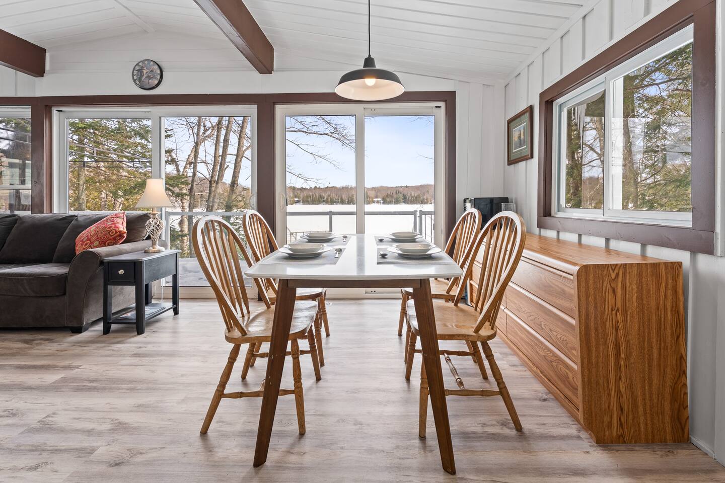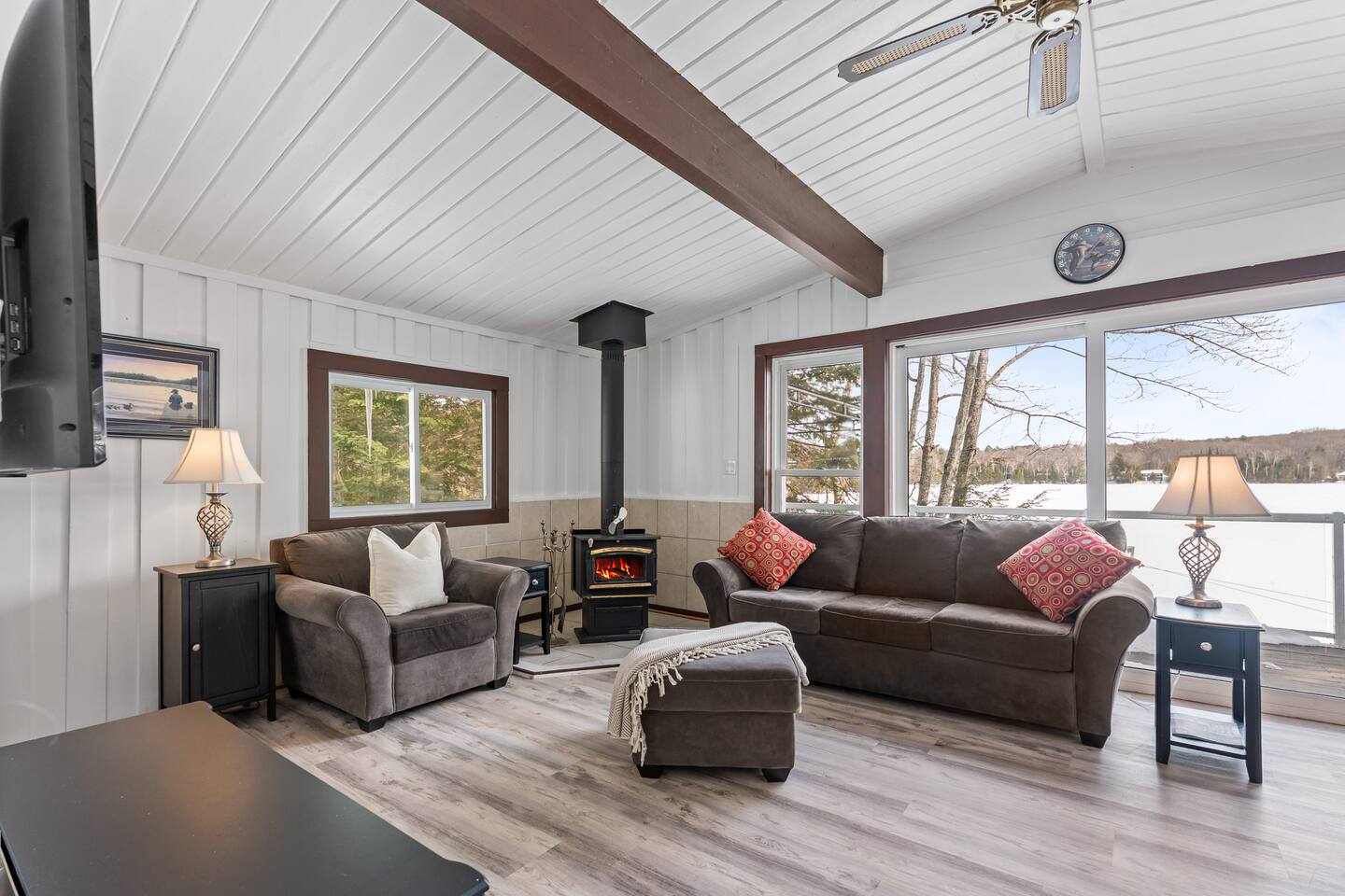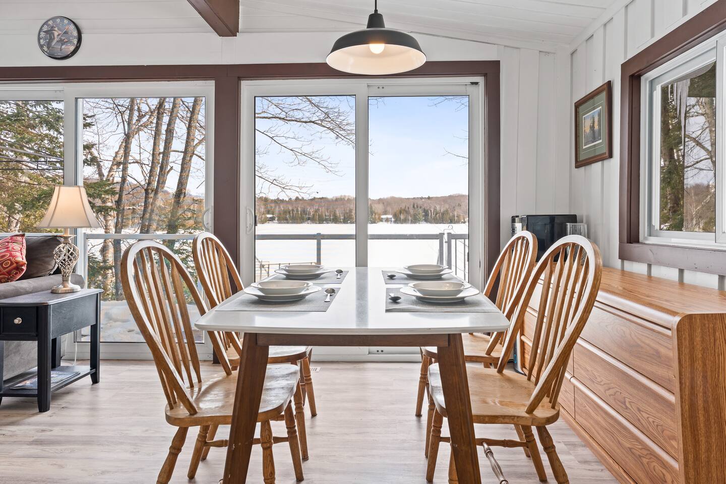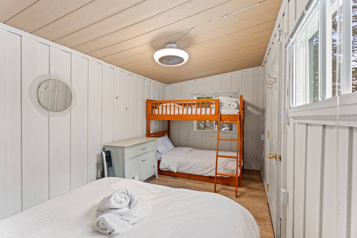 FAMILY FRIENDLY WATERFRONT RETREAT Designed for families and friends that are looking to spend quality time together. You will find everything you need in this well appointed family and pet friendly cottage! Welcome to this Menominee Lake Waterfront Stay. We have worked to make it an enjoyable and comfortable experience for anyone looking to relax and unwind in beautiful Muskoka! Adventure and comfort await with these features: ✔ Prime Waterfront Location on Menominee Lake ✔ Sleeps up to 6 guests ✔ 3 Bedrooms | 1 Bathroom ✔ Fully Equipped Kitchen ✔ Free Parking on Premises ✔ Pet-Friendly Space ✔ Year Round Access ✔ Fire Pit ✔ Kayak ✔ Pedal Boat ✔ SUP ✔ Large Dock ✔ Sunsets ✔ Shallow Sandy Entry ✔ Convenient location minutes to Huntsville Bring your family and make forever memories experiencing the beauty of Muskoka in any season! KITCHEN & DINING The fully equipped kitchen with sit up island, is ready for all your meals during your stay. Whether you’re preparing a hearty breakfast before a day outdoors or a cozy dinner after exploring the lake. The dining area is comfortable and functional — perfect for family meals or casual gatherings with friends. ✔ Dining Table that seats 6 LIVING ROOM Relax in the inviting living area designed for comfort and togetherness after a day of adventure. ✔ Comfortable Seating ✔ Woodstove ✔ Bright & Airy Layout ✔ Lake Views from Living Space SLEEPING ARRANGEMENTS Primary Bedroom ✔ Queen Size Bed Second Bedroom ✔ Queen Size Bed Third Bedroom ✔ Double Bed All bedrooms feature fresh linens and relaxing spaces for a good night’s sleep. BATHROOM ✔ 1 Full Bathroom ✔ Fresh Towels Provided OUTDOOR SPACE Enjoy your time on scenic Menominee Lake with easy access to waterfront relaxation. Whether you’re watching the sunset, sipping morning coffee, star gazing by the firepit or planning lake activities, the setting offers a tranquil stay. ✔ Waterfront Access ✔ Outdoor Seating ✔ Scenic Views for Relaxation PARKING ✔ Free Parking On Premises 🧭 EXPLORE THE AREA Take a 5 minute drive into the bustling town of Huntsville or enjoy charming Baysville! - Explore charming local boutiques 🛍️ - Dine in or take out at the local eateries 🍽️ - Ski during winter months at Hidden Valley - Enjoy the local outdoor markets 🍉 - Hike, ski, skate, snowshoe at Arrowhead 🥾 🧭 - Visit the sought after Sandhill Home & Garden Centre where every season is celebrated. Take in a snack or lunch at the Rusty Rake. Located on a year-round, maintained road you will be: - Minutes to Baysville - 10 minutes to Huntsville - 2.5 hours from Toronto 🧑🧑🧒🧒 WHY FAMILIES LOVE IT - Home away from home in the great outdoors with a private waterfront view - Perfect location for proximity to lots of outdoor adventure - Beautiful sunsets and stargazing - Easy access in all seasons ★☆ Book Today & Enjoy Muskoka’s Natural Beauty! Dates fill fast!☆★