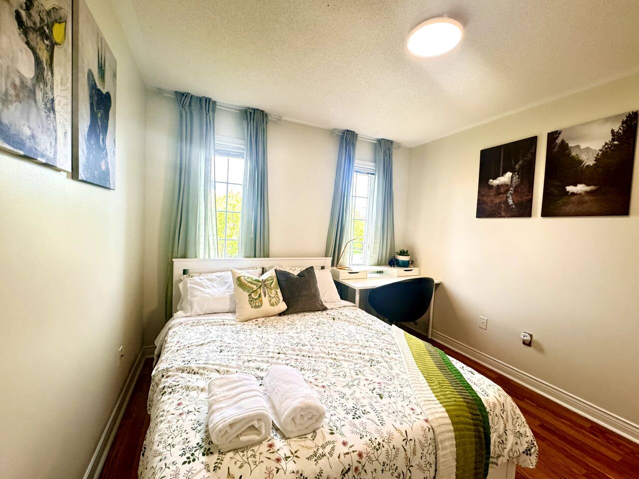 Welcome to Your Memorable Stay! 🏡✨ Imagine arriving at a cozy, modern home where every detail has been crafted to ensure a memorable stay. Whether you're reuniting with family, exploring Mississauga, or unwinding after a long journey, this 5-bedroom, 2.5-bathroom retreat offers the perfect setting. Here's how previous guests have made the most of their time here: A Place to Relax and Reconnect ❥ Family movie nights in the cozy living room with a large TV. ❥ Cooking up feasts in the fully equipped kitchen, featuring a fridge, stove, dishwasher, and even an espresso machine. ❥ Restful nights in 5 comfortable bedrooms with fresh linens and extra blankets. Memorable Gatherings 🔥 Backyard evenings by the fire pit, while kids play in the fully fenced yard. 🎲 Bonding over board games or sharing stories around the spacious dining table. ☀️ Relaxing on the patio with morning coffee and fresh air. Perfect Location for Adventure ✈️ Just 10 minutes from Toronto Pearson Airport—perfect for travelers. 🏙️ A quick 10-minute drive to downtown Mississauga, with Square One Mall, parks, and cultural spots to explore. 🚗 Easy access to major highways (401 & 407) for trips to Toronto’s downtown (30 minutes) or exploring the GTA. 🛍️ Minutes from Lisgar Plaza and Meadowvale Town Centre for shopping, dining, and services. Amenities to Make You Feel at Home ✅ Wi-Fi and a dedicated workspace for remote work. 🛁 A relaxing bathtub and stocked essentials like towels, shampoo, and body wash. ❄️ Central heating and air conditioning, plus portable fans for personalized comfort. 🔒 Self-check-in with a keypad for seamless arrivals. 🚗 Ample parking with space for 4 cars in the driveway and street parking available. Guest Favourites ❥ Spotlessly clean spaces designed for comfort. ❥ A quiet, family-friendly neighborhood for peaceful stays. ❥ Thoughtful extras like board games, reading materials, and a Roku TV. Your Next Chapter Awaits From hosting multigenerational families to offering a cozy stop after a long flight, this home has created countless cherished memories. Now, it’s your turn to make yours. Book today and discover why guests keep coming back for more. 🌟