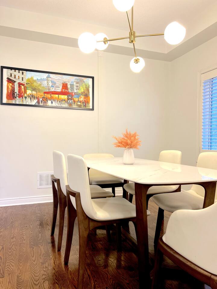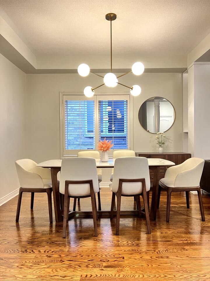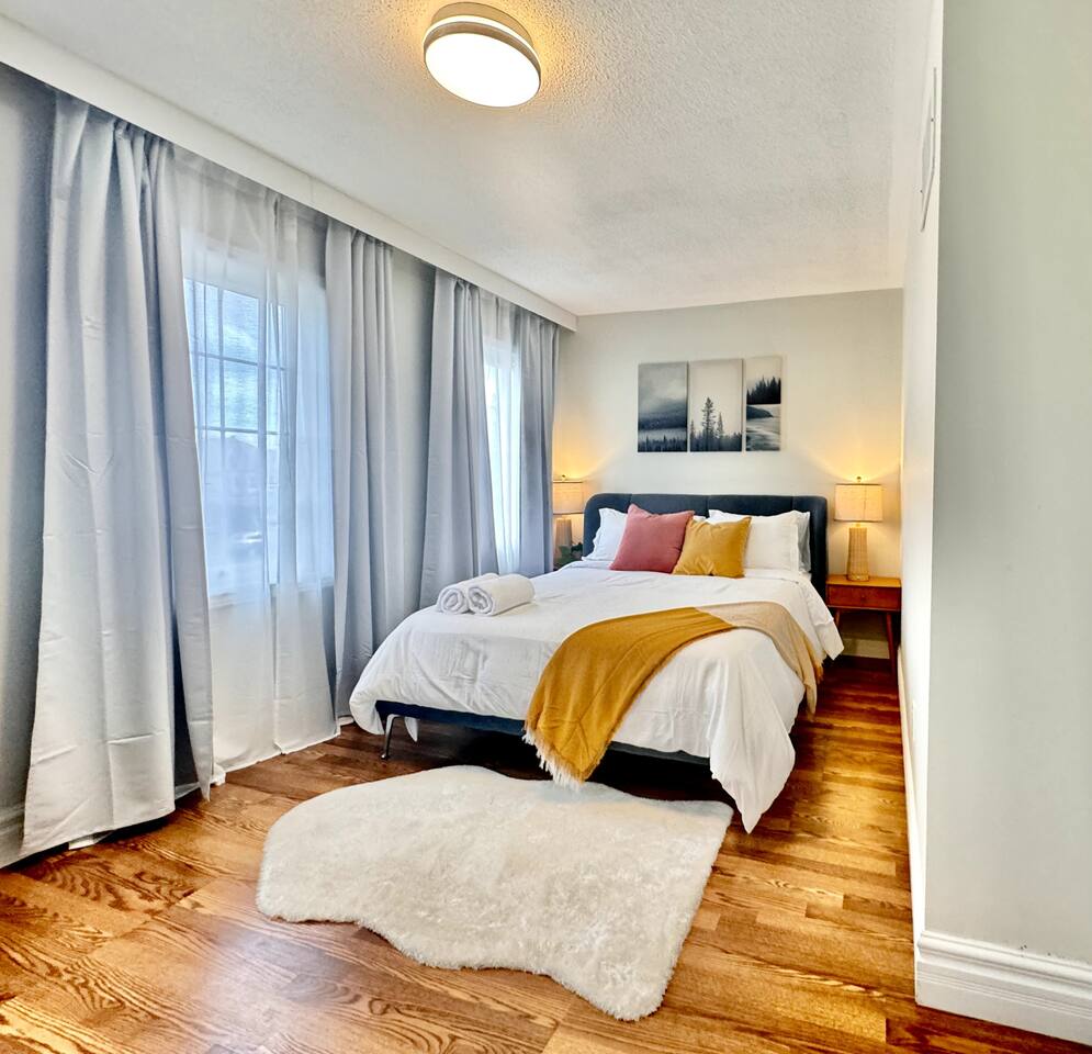 Just 10 minutes from Toronto Pearson Airport ✈️ and downtown Mississauga 🏙️, enjoy a fully equipped kitchen 🍳, cozy living spaces 🛋️, and a private backyard with a fire pit 🔥. Welcome to your luxurious home away from home! 🏡 Perfect for families or groups, this spacious 5-bedroom retreat in Mississauga offers comfort, convenience, and charm. Guests rave about our cleanliness, thoughtful touches, and responsive hosting. Experience true comfort book now for a relaxing, hassle-free stay. ✨