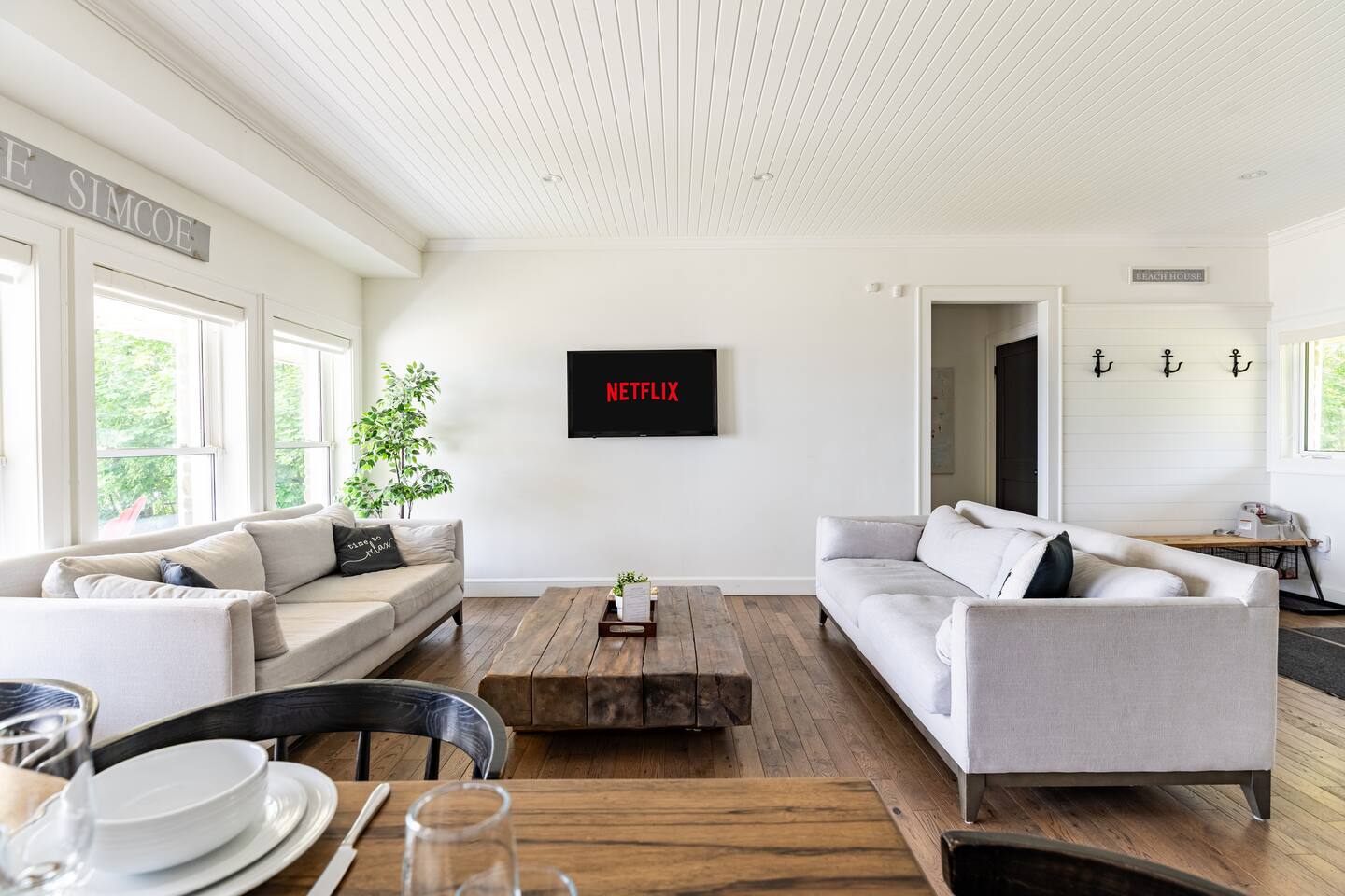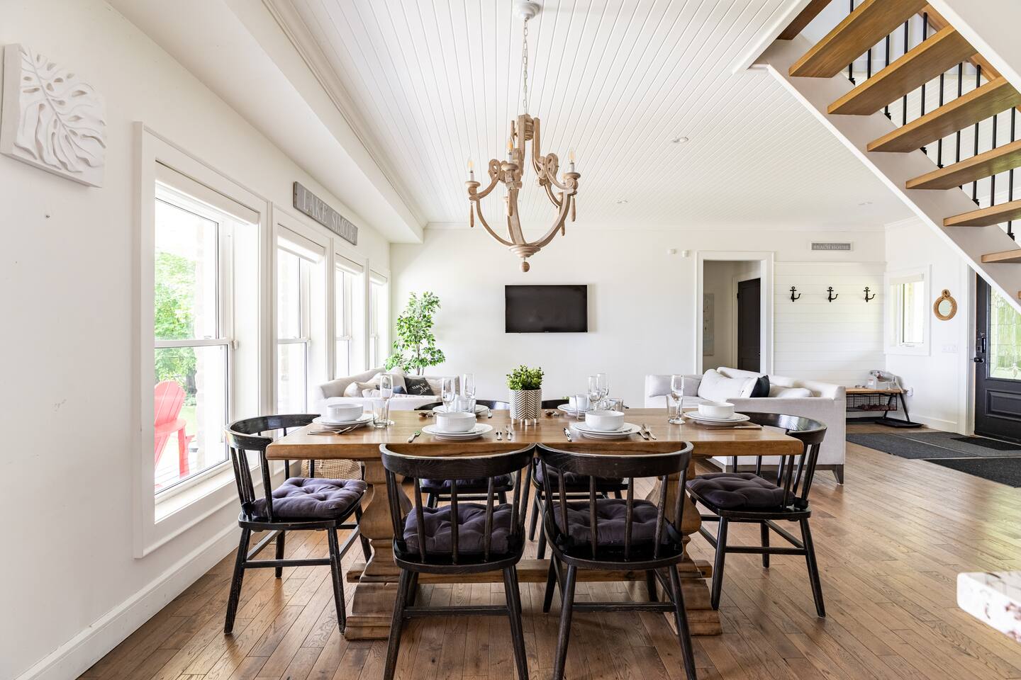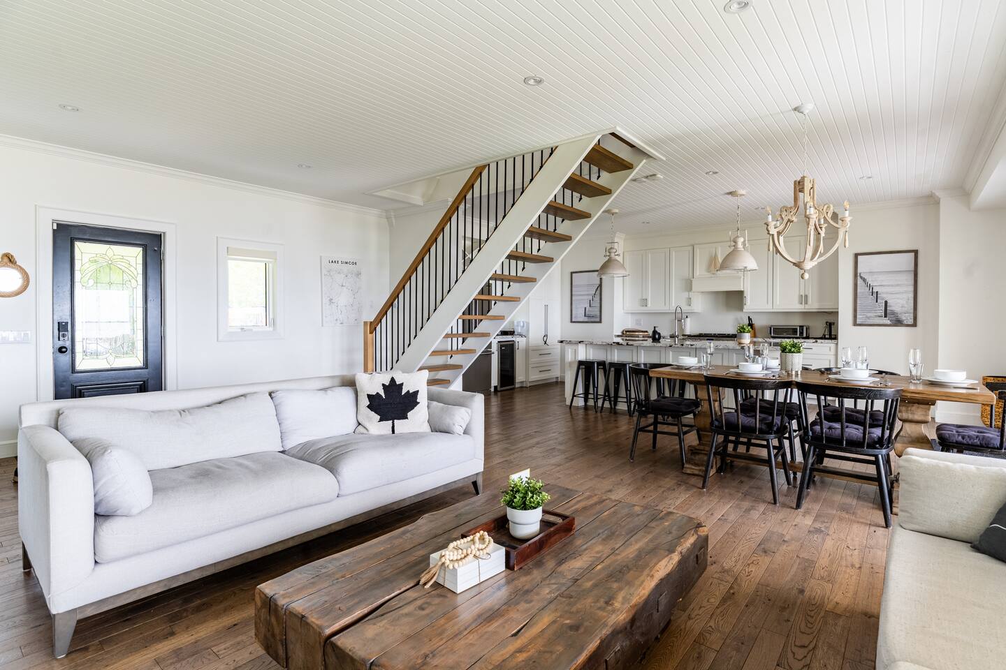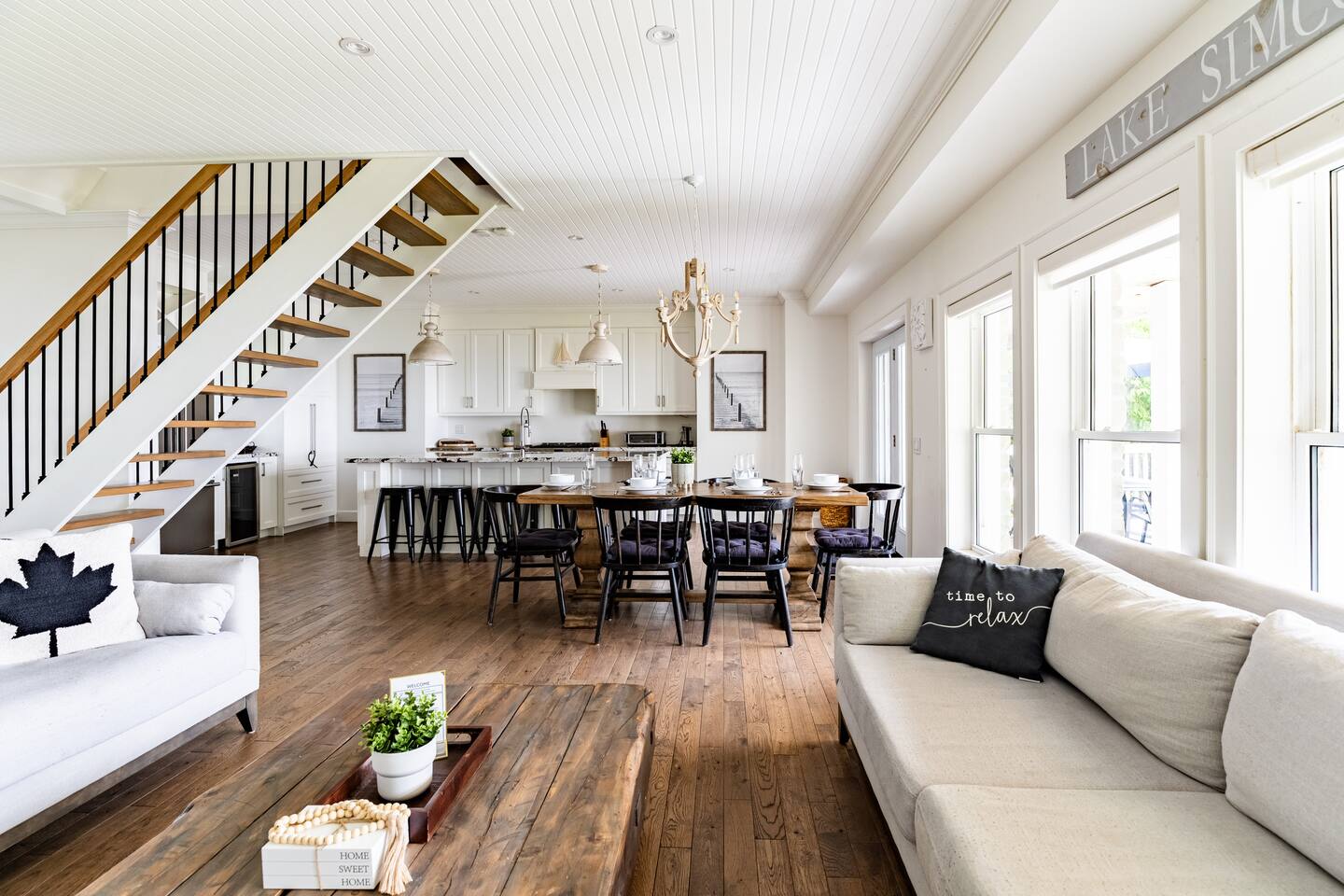 βοΈ Key Winter Features & Amenities π₯ Firepit & Cozy Lounge β Gather under the stars with blankets and hot cocoa πͺ΅ Indoor Comfort β Spacious living rooms, Smart TVs, PS4 & board games π· Chefβs Kitchen β Coffee bar, wine fridge & BBQ (available weather-permitting) ποΈ 4 Bedrooms, Sleeps 10 β Perfect for families or groups π± Smart Home Ready β Wi-Fi, Smart TVs & thermostats πΎ Pet Friendly β Bring your furry friend along (with approval) π² Trails & Winter Fun β Minutes to Friday Harbour for skating, dining & snowshoeing π Easy Drive from Toronto β Only 1.5 hours away (Dock & swimming closed during cold months) π€ Sleeping Arrangements - Master Bedroom #1: Queen bed + spa-style ensuite - Bedroom #2: Queen bed + soaking tub & shower - Bedroom #3: Queen bed, warm & inviting - Bedroom #4: Double/Single bunk bed (perfect for kids) - Extra: 2 sofas for additional sleeping space π³ Kitchen & Dining - Designed for gathering and comfort. - Fully equipped kitchen with modern appliances - Coffee bar with Nespresso & traditional brewer - Mini wine fridge & oversized bar seating - Indoor dining for 10 guests - Outdoor patio dining (with lake views when weather permits) ποΈ Nearby Winter Adventures - Friday Harbour Resort: Skating rink, snowshoe & fat-bike rentals, dining & events - Innisfil Beach Park: Toboggan hill, ice fishing, and scenic winter walks - Local Trails: Perfect for snowshoeing and photography π‘ House Rules & Notes π« No parties or events β quiet hours 10 PM to 8 AM πΎ Pets require pre-approval πͺ΅ Firewood not provided β bring your own β οΈ Dock & beach closed for winter season β Guest Favorites βThe perfect winter escape β peaceful, cozy, and close to Friday Harbour!β βWe loved the firepit nights and the snowy lake views!β Book Your Winter Getaway Today! Experience lakeside tranquility, cozy comfort, and nearby winter adventures at Sunrise Lakehouse β your home away from home on Lake Simcoe.