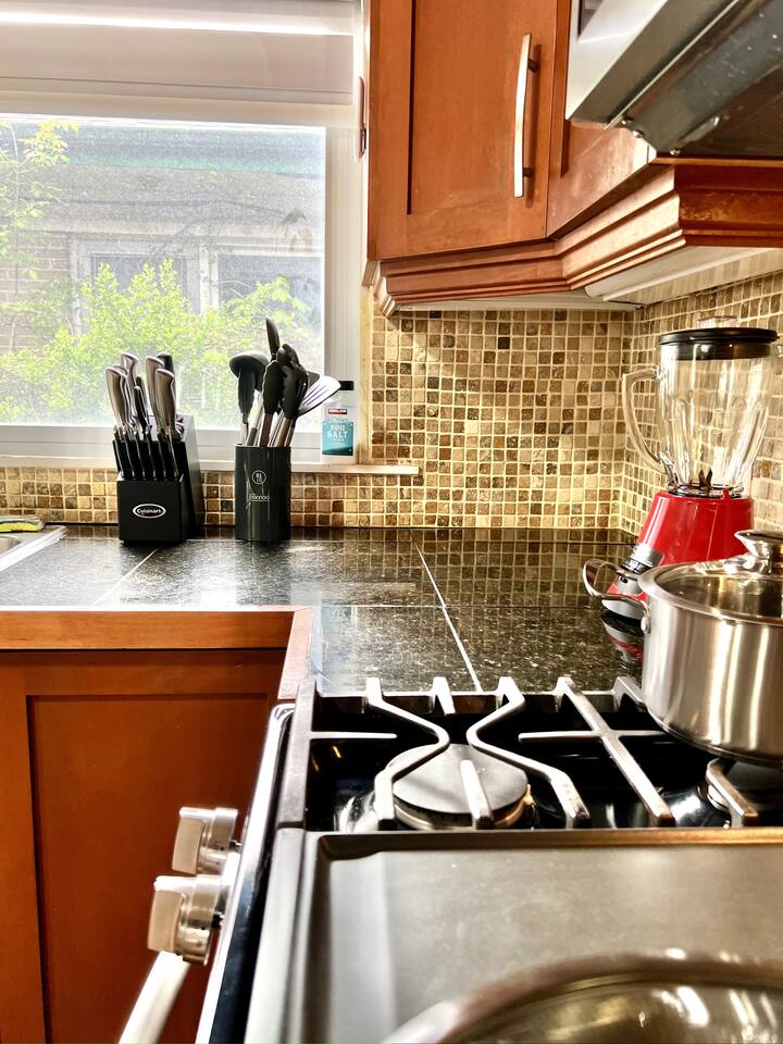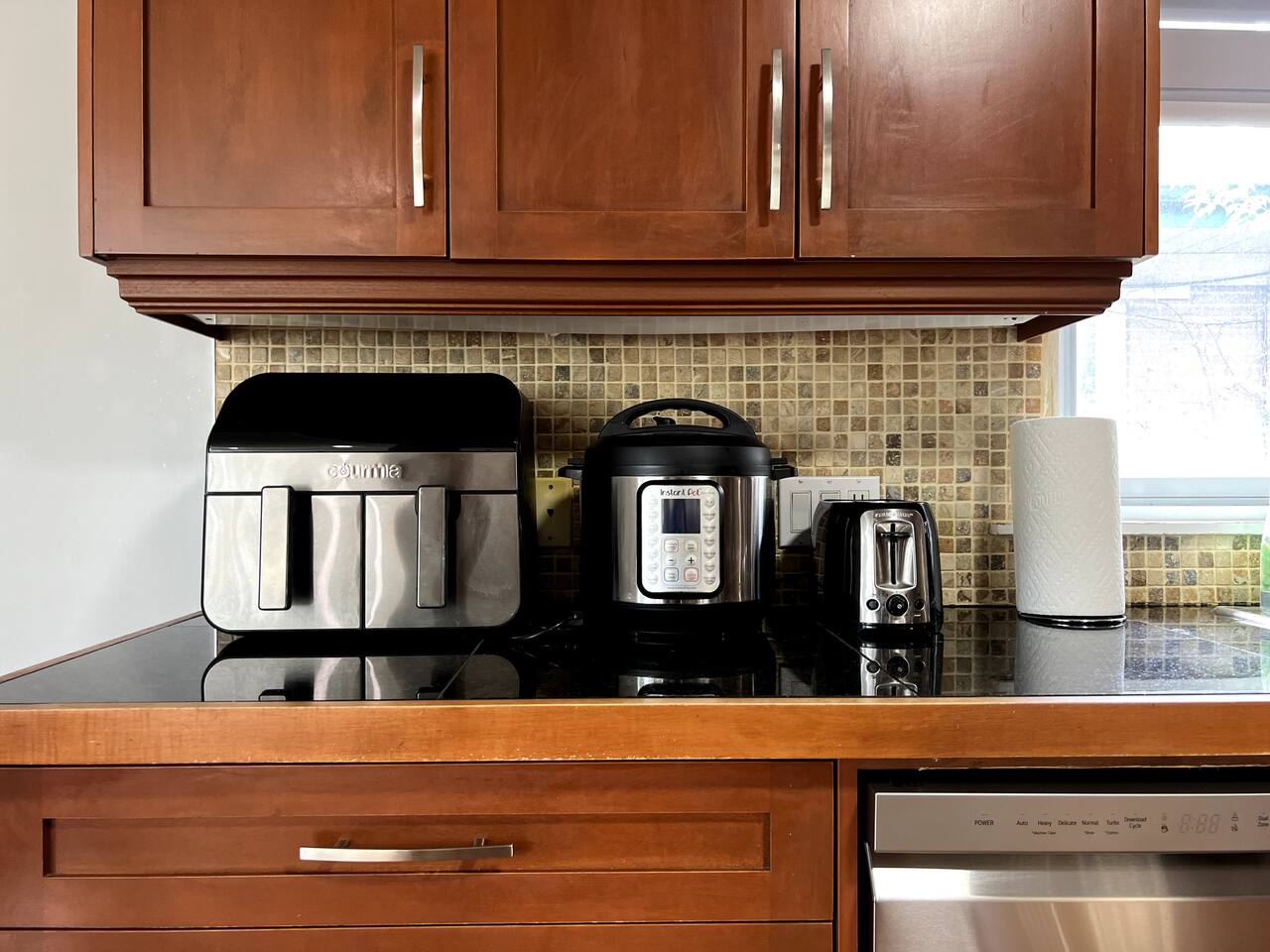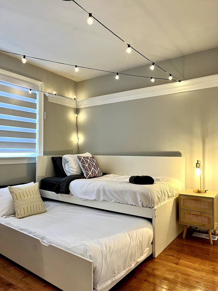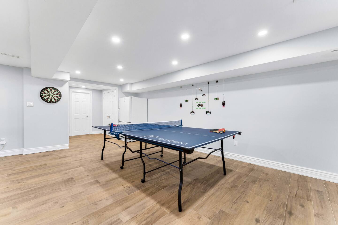 ★ KEY FEATURES ★ ✔ PRIME LOCATION close to 401 & Airport ✔ Over 2,000+ sqft of space ample for families and groups ✔ Professionally Cleaned ✔ Highspeed WiFi connection ✔ Smart TVs w/ Steaming Apps ✔ Self Check-in ✔ 2x Dedicated Workspace ✔ Coffee & Tea Bar ✔ Fresh towels, & bathroom essentials provided ✔ Fully equipped Kitchen ✔ Parking on the premises (up to 6 cars) ★ ENTERTAINMENT KIDS ROOM ★ ✔ Ping Pong Table ✔ Full Size Connect 4 ✔ Jenga and other board games ✔ PS5 with 2 controllers ✔ Reclinable Sofas perfect for Movie Night ✔ 55" Smart Flat-Screen TV with Netflix, YouTube, and more! ★ KITCHEN & DINING ★ The kitchen area with numerous cooking appliances and spacious countertops. If you want to take a break from restaurants, then this is the place for you. ✔ Microwave ✔ Stove ✔ Oven ✔ Refrigerator/Freezer ✔ Dishwasher ✔ Toaster ✔ Sink - Hot & Cold Water ✔ Silverware ✔ Pots & Pans A cozy dining table is woven between the kitchen and the living room. It is perfect for those who want to enjoy a delicious family meal. ✔ Dining Table with 8 Chairs & Bench ✔ Suitable for Laptop Work & Meetings also ✔ High chair (stored by the front door closet) ★ LIVING ROOM ★ It is nestled in the main floor living area. It is ideal for relaxing and enjoying the company of friends and family ✔ Comfortable Sofas with Pillows & Throws ✔ Coffee Table ✔ Bar Seating for 2 ★ SLEEPING ARRANGEMENTS ★ Corner Master Bedroom ✔ Queen Size Bed ✔ Pack n' Play Crib King Family Bedroom ✔ Single Size Bed ✔ King Size Bed Boho Bedroom ✔ Double Size Bed Starry Night Bedroom ✔ Single Size Pull out Beds ★ BACKYARD GREEN SPACE★ A nice new lawn for you to hang out and soak up the sun. ✔ Private ✔ Fully Fenced ★ DRIVEWAY & PARKING ★ ✔ 6 cars on the driveway ✔ Additional free street parking around the block (check signs, park at your own risk) ★☆ Book Today & Let Us Take Care Of You In Toronto! ☆★
